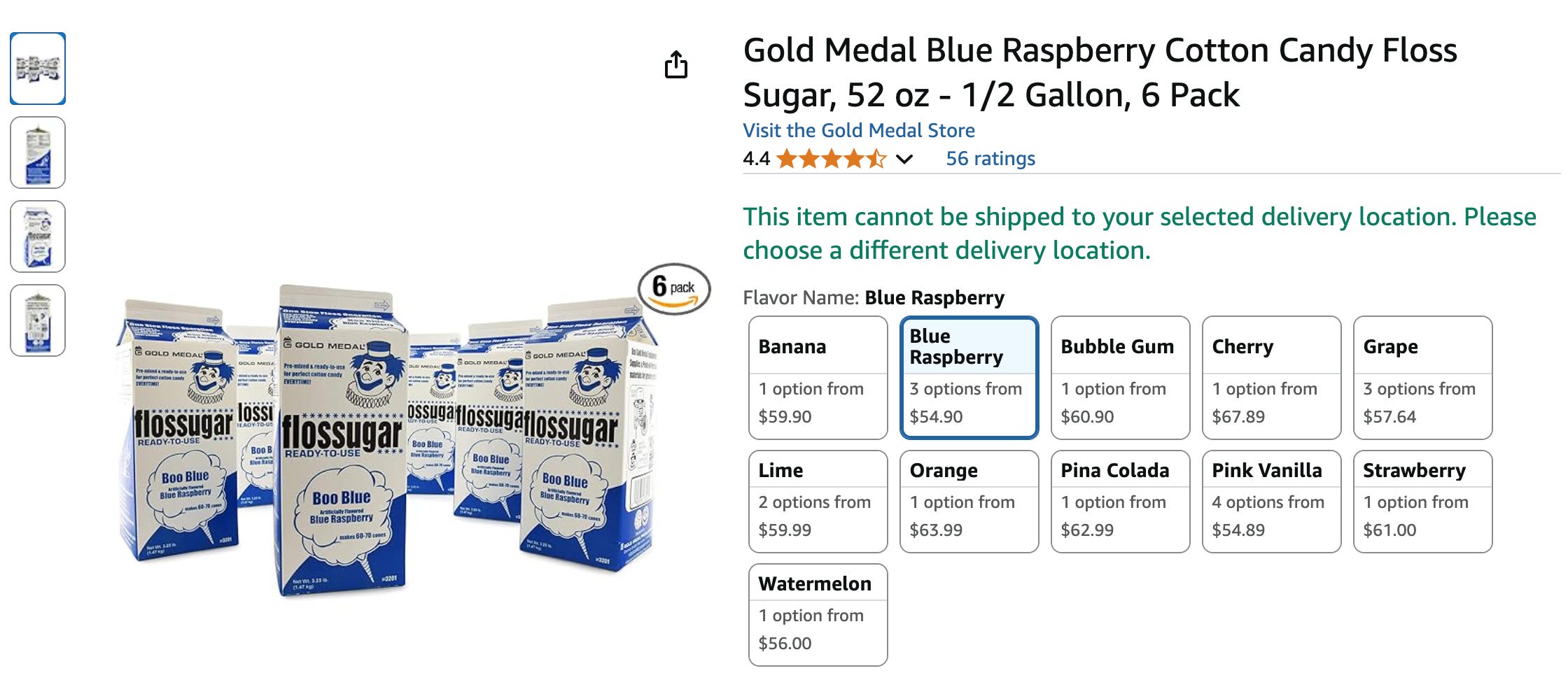 The earliest mention of blue raspberry is as a cotton candy flavor by the company Gold Medal, in 1958. âUnfortunately,â Park writes, âGold Medal's spokeswoman Heather Gims says there's no one still at the family-run company who can remember anything about how Gold Medal got into the blue raspberry business.â