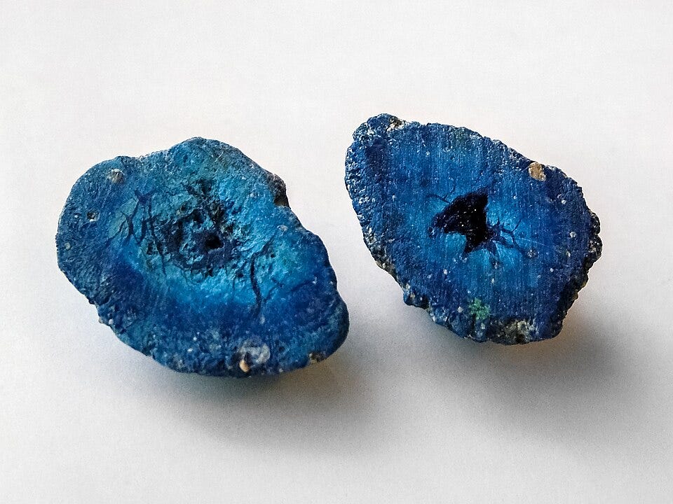 Before indigo was a thing in the Old World (that started circa 2400 BC), the Egyptians had already become obsessed with the color blue. Besides the sky, it was available in the form of semiprecious stones like turquoise and lapis lazuli, cobalt oxide (more on that later), as well as the mineral azurite, which they mined in Sinai and the Eastern Desert.